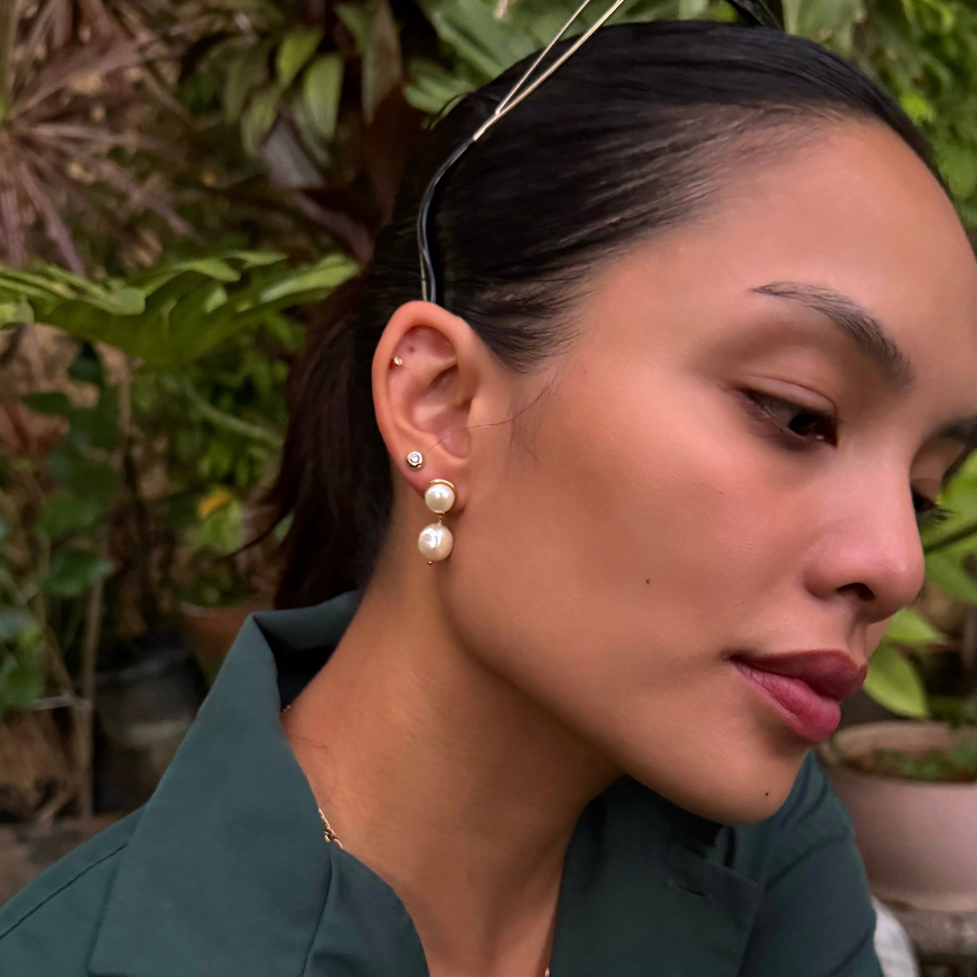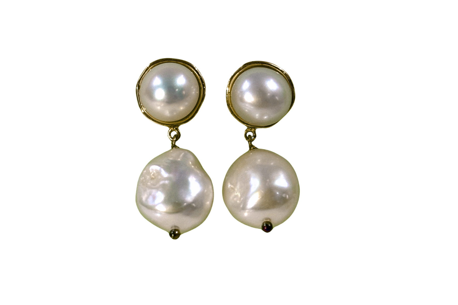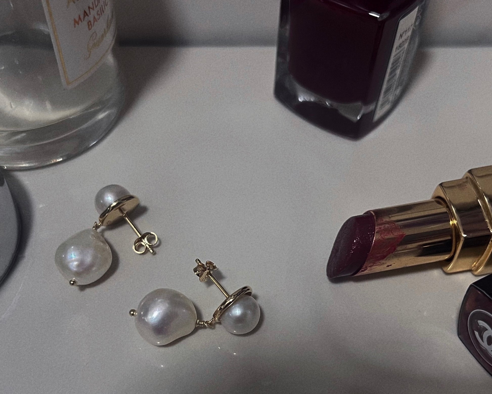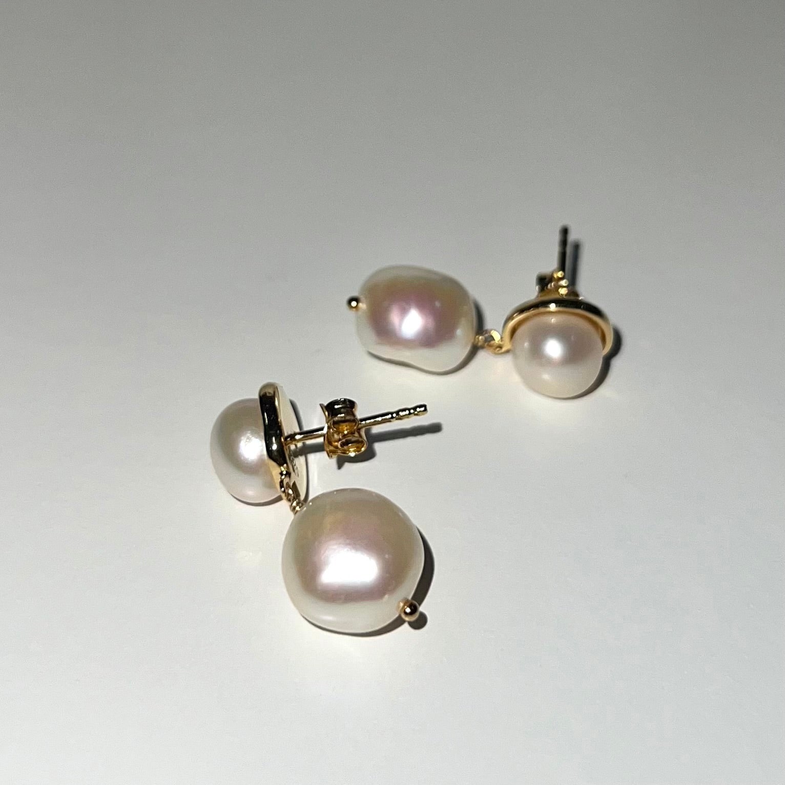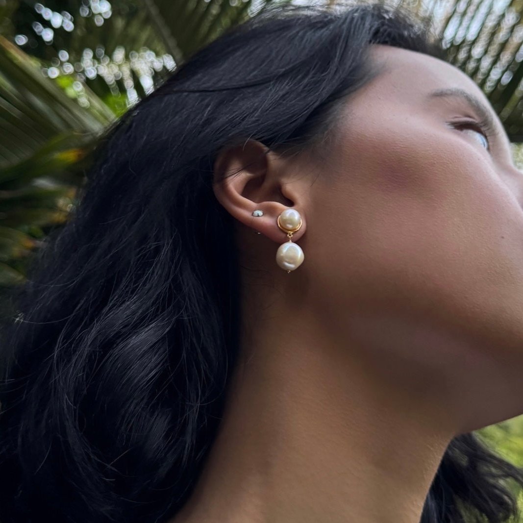 Introducing the ever classy, Saint-Martin. A sophisticated earring that features a baroque freshwater pearl eloquently dangling beneath a round one.